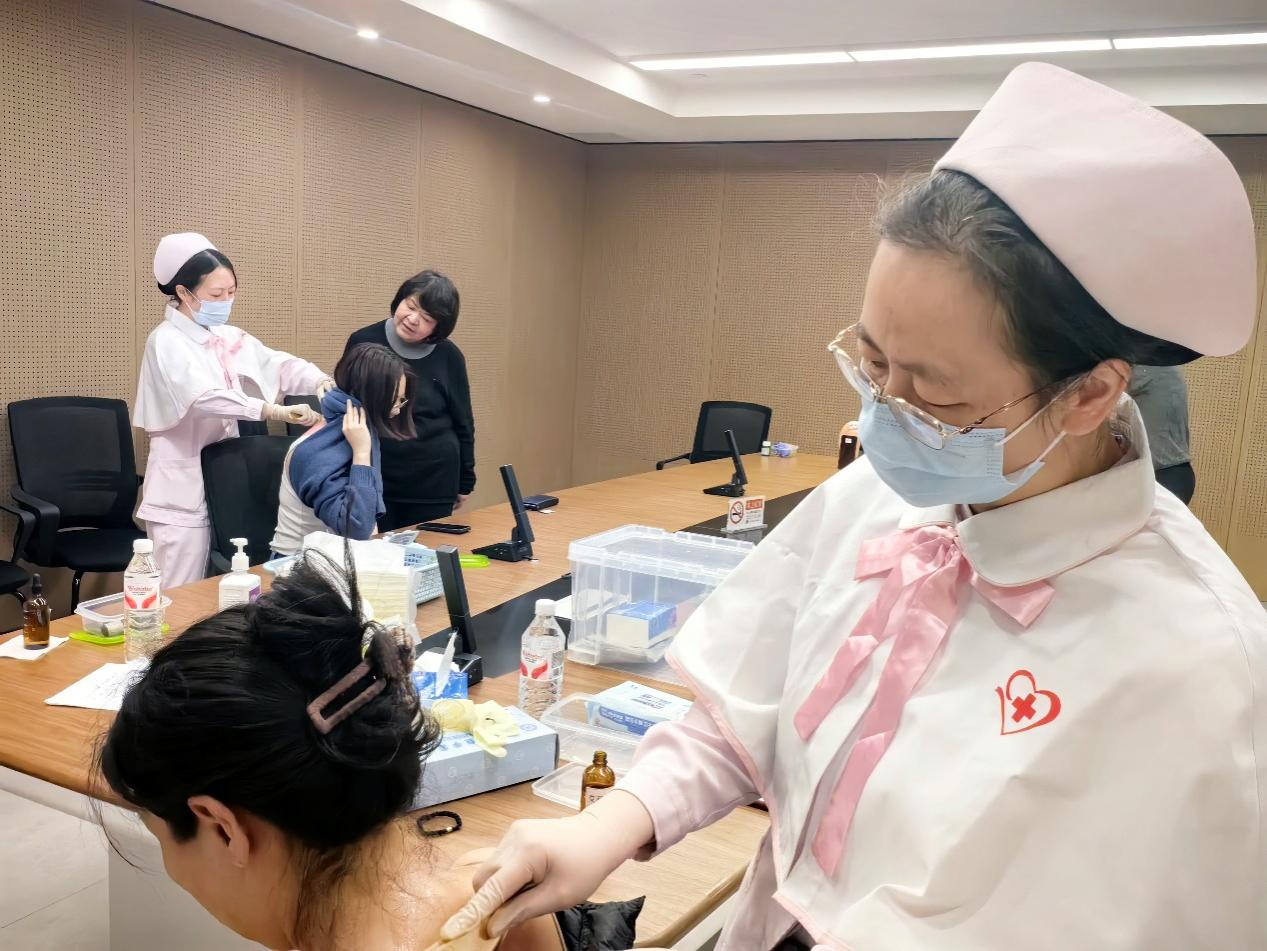 特色护理:护士团队展示了中医外治的独特魅力,为职工开展耳穴贴压、刮痧和拔罐治疗。